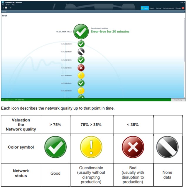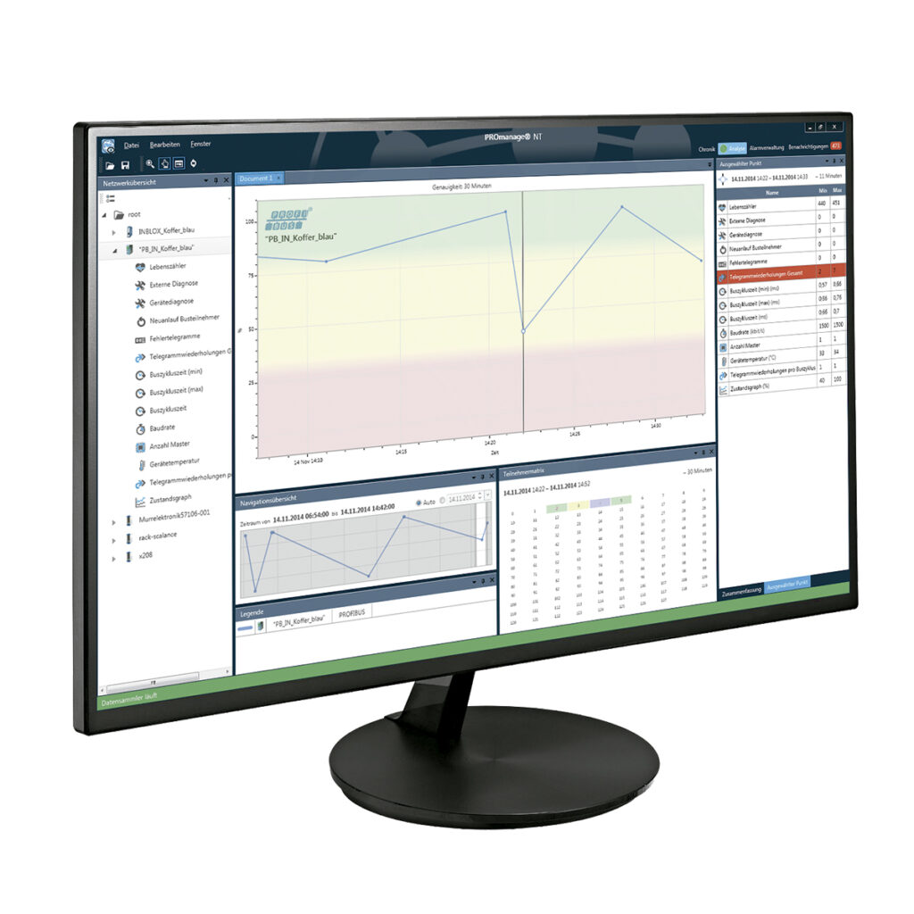 PROmanage® NT permite analizar y almacenar el estado de los sistemas de bus de campo y redes industriales. La información se transmite a un punto central, facilitando el acceso a la condición del bus de campo y Ethernet. Detecta irregularidades y activa alarmas cuando se alcanzan umbrales ajustables, permitiendo rastrear eventos históricos y fallos esporádicos.